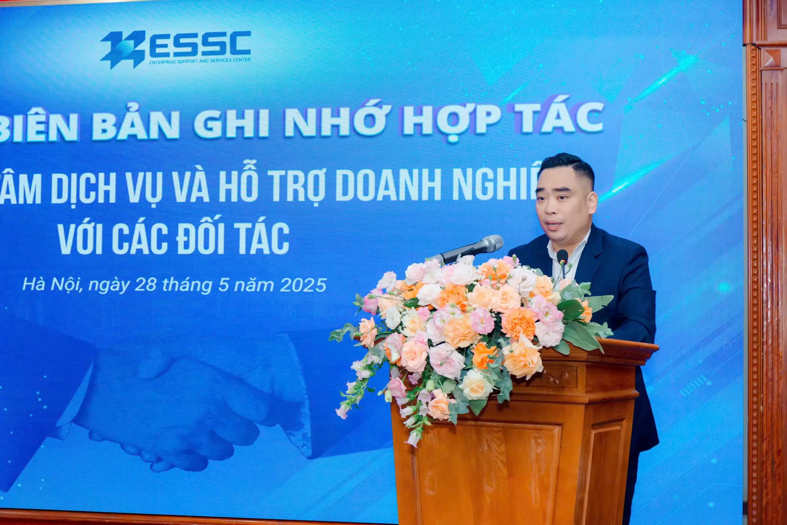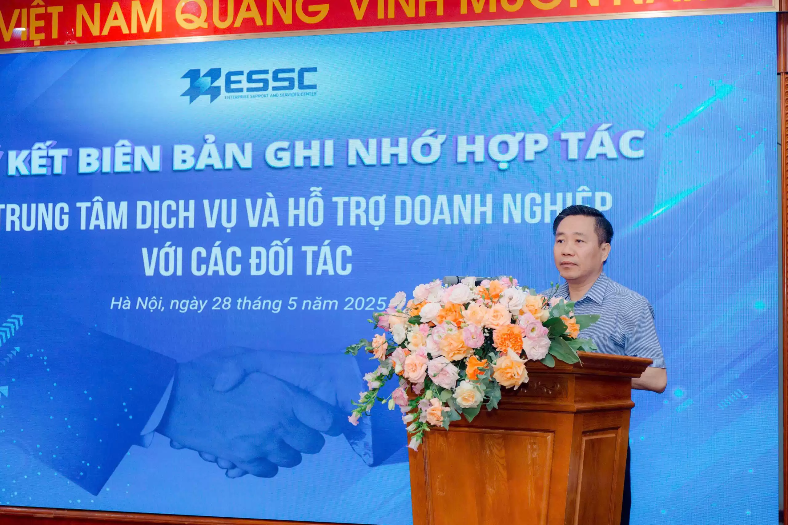 Nhằm triển khai các nhiệm vụ được giao tại Quyết định số 1893/QĐ-UBND ngày 03/4/2025 của UBND thành phố Hà Nội, ngày 28/5/2025, tại Khu Công nghệ cao Hòa Lạc, Trung tâm Dịch vụ và Hỗ trợ doanh nghiệp tổ chức buổi lễ ký kết biên bản ghi nhớ hợp tác với các đối tác có năng lực và nhiều kinh nghiệm trong các lĩnh vực: chuyển đổi năng lượng xanh, môi trường, tư vấn luật, kiểm định, đo lường, ISO, hạ tầng kỹ thuật, khám sức khoẻ định kỳ, tổ chức sự kiện, vệ sinh công nghiệp, suất ăn công nghiệp, chăm sóc cây xanh và các dịch vụ khác.